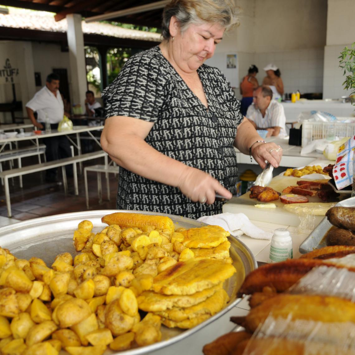 Especialidades: empanadas de maíz y yuca, arepa de maíz pelao y chicharrón, tamales de maíz y cerdo.
